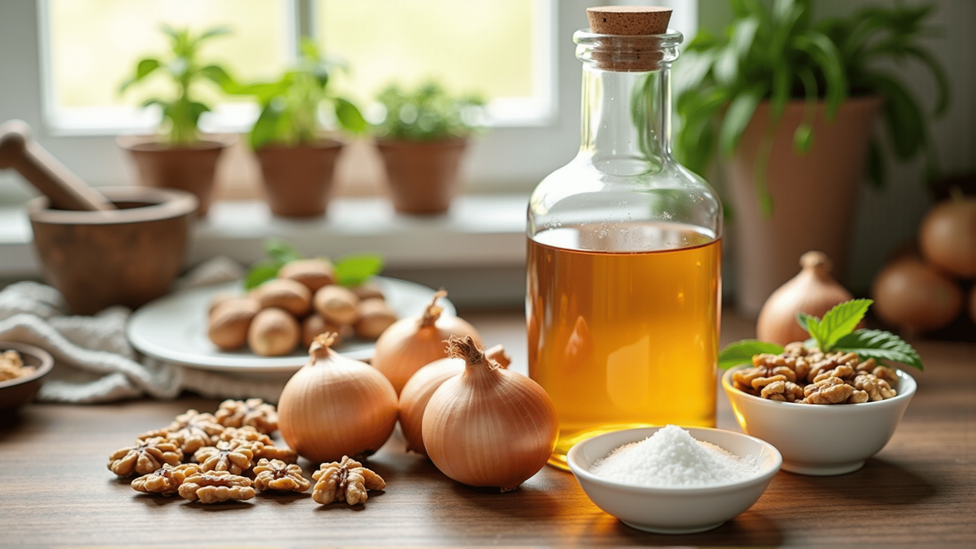 Entdecken Sie unsere Sammlung bewährter Gesundheitsrezepte mit Zwiebelsaft und Walnuss. Natürliche Schönheit beginnt hier.